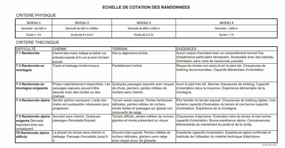 Le CAF vous propose des randonnées tous niveaux tant physique que technique (voir tableau des cotations). Il suffit d'avoir une bonne forme physique, de bonnes chaussures, un sac à dos et des bâtons.